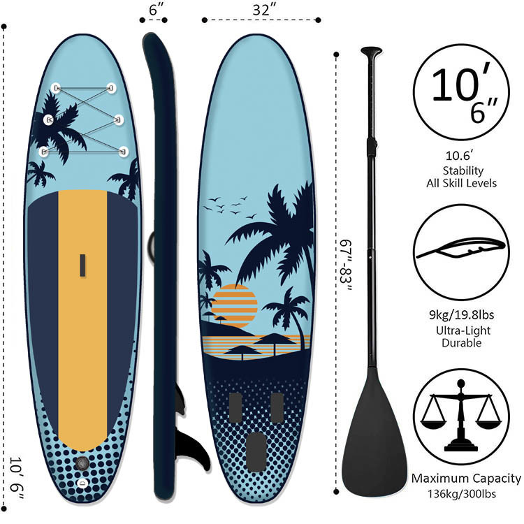- [पूरा सामान]यह पैडलिंग शुरू करने के लिए आवश्यक हर चीज के साथ आता है: 10'6 '' inflatable पैडल बोर्ड, 3-टुकड़ा लंबाई समायोज्य फ्लोटिंग पैडल, सुरक्षा टखने का पट्टा, मरम्मत किट, हटाने योग्य फिन, सब कुछ रखने के लिए एक बड़ा आरामदायक बैकपैक। हुआरुई का एक सेट सर्फ़बोर्ड और अपनी नई यात्रा शुरू करें!